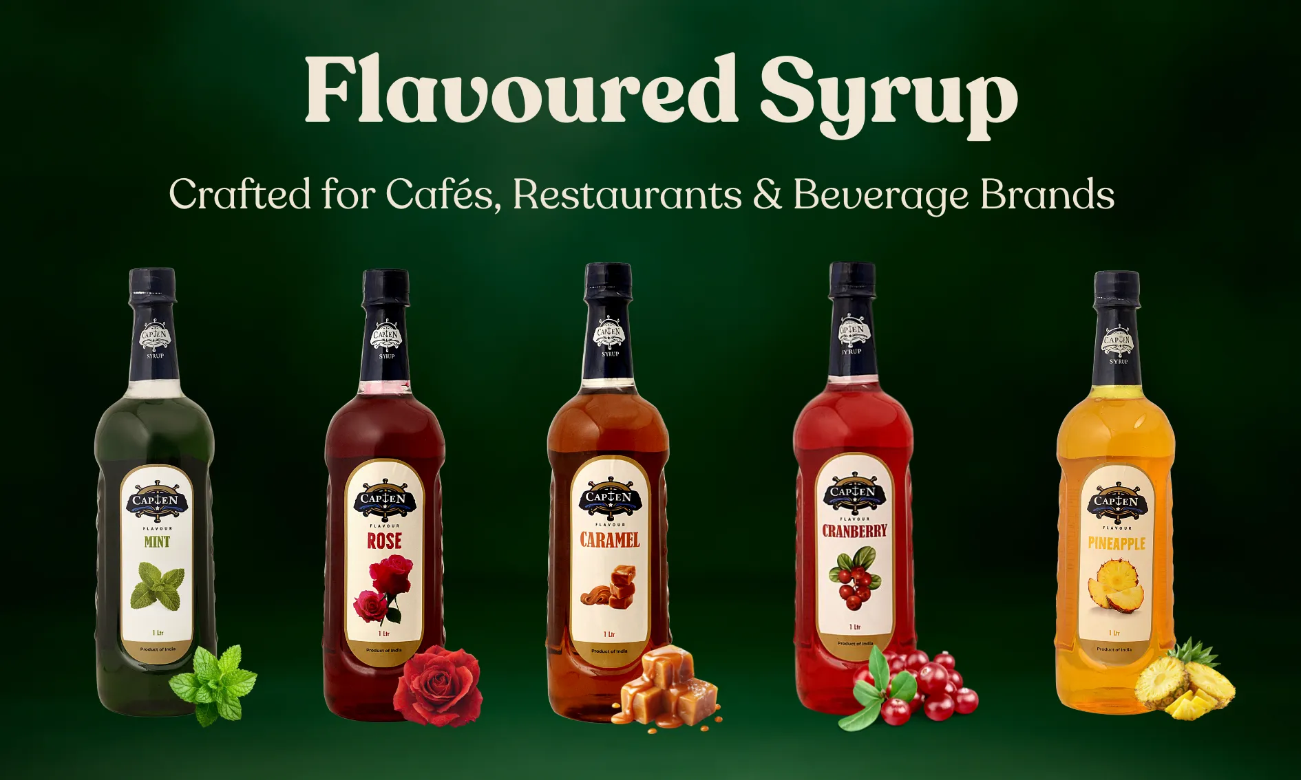 Capten Food & Beverages offers a wide range of premium Flavoured Syrups crafted to deliver bold taste, vibrant colour, and consistent performance in every pour. From classic fruit flavours to café-style favourites and mocktail essentials, our syrups are designed to enhance beverages, desserts, and creative drink recipes.
