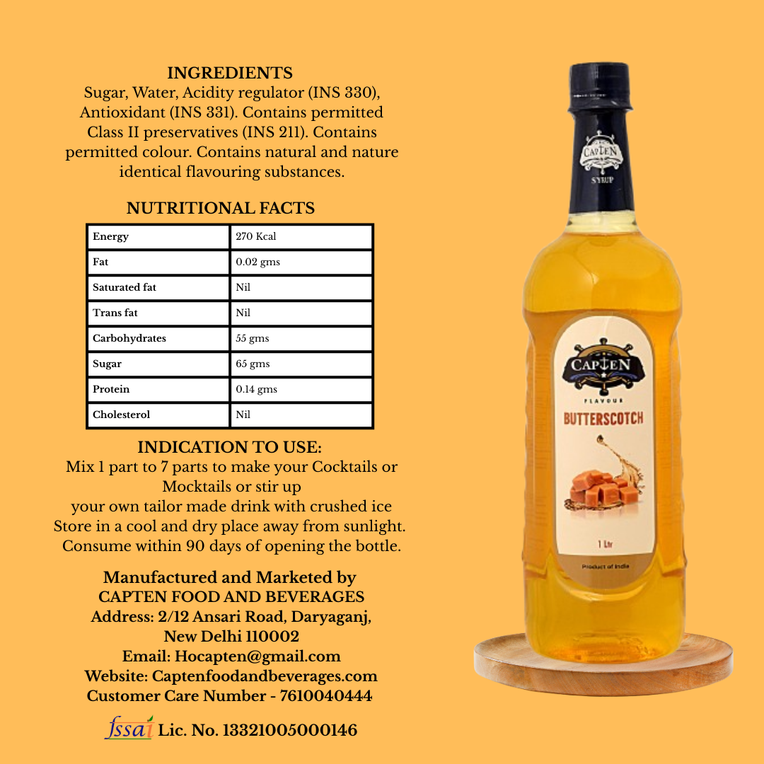 Be the first to review “CAPTEN Butterscotch Syrup 1L | Perfect Mixer For Enhancing Mocktails & Cocktails, Drinks, And Mojitos At Parties, Conveniently Packaged in a Bottle” Cancel reply