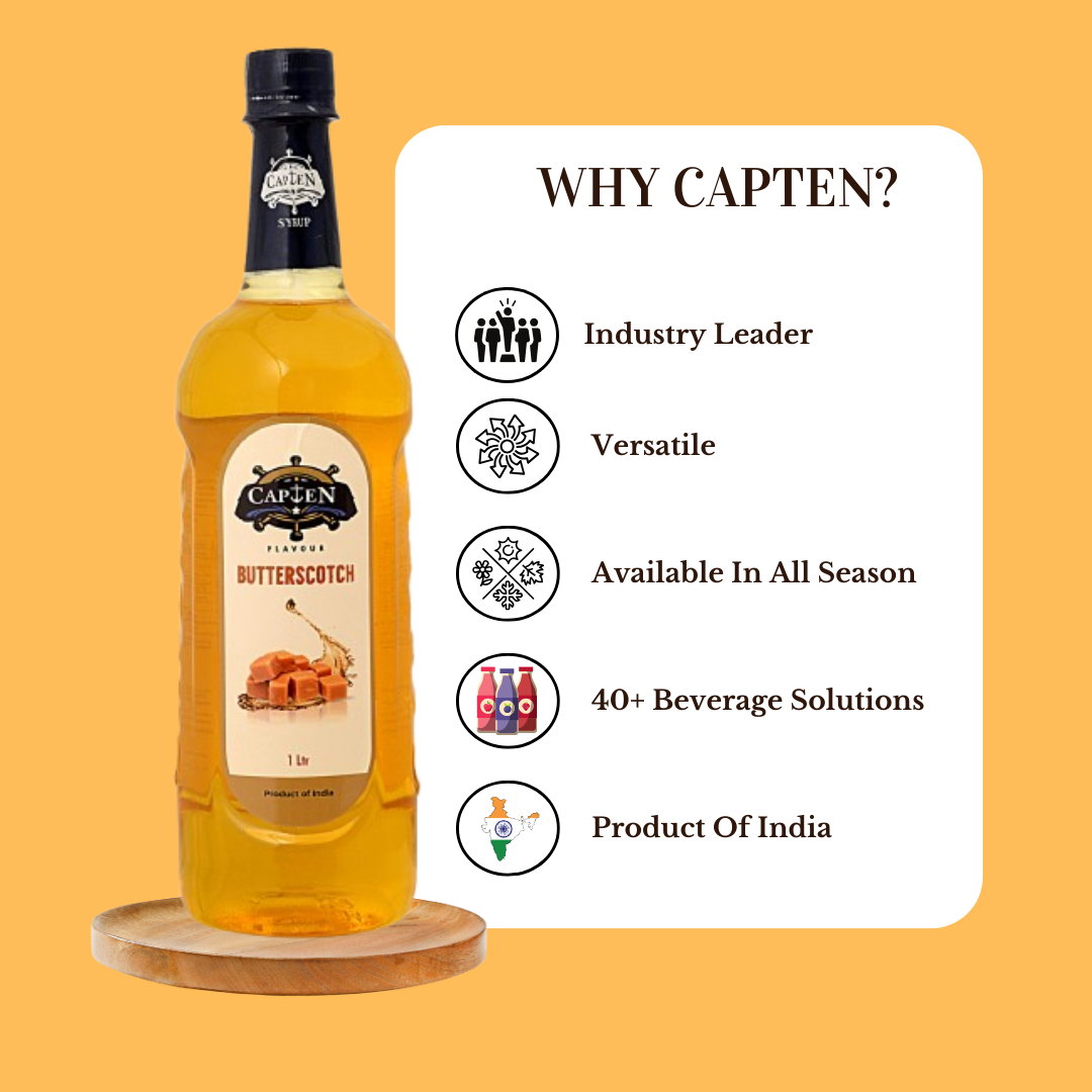 CAPTEN Butterscotch Syrup 1L | Perfect Mixer For Enhancing Mocktails & Cocktails, Drinks, And Mojitos At Parties, Conveniently Packaged in a Bottle