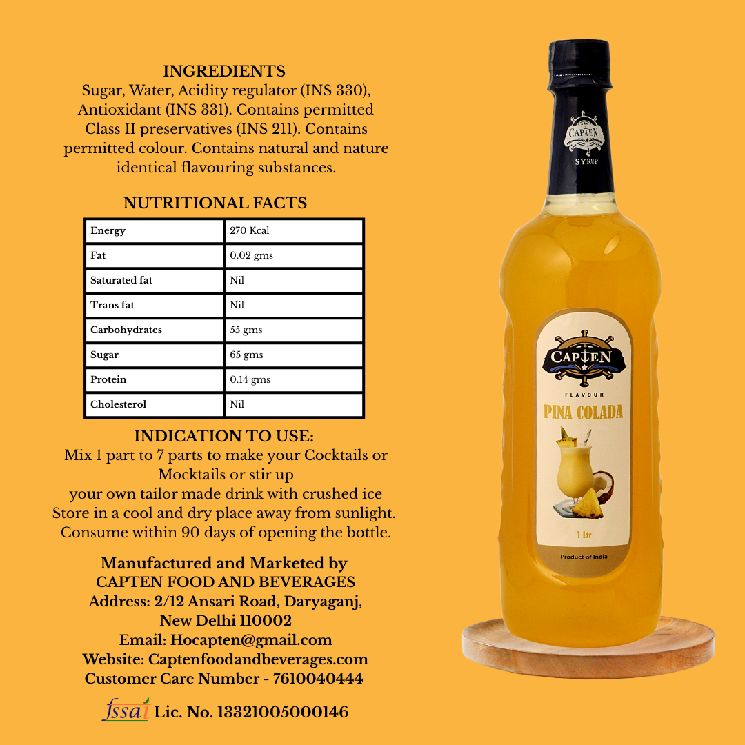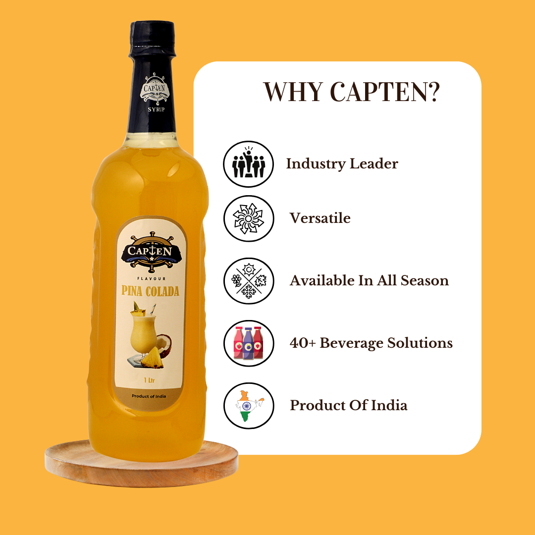 CAPTEN Fruit Mocktail Syrup Pina Colada 1L Bottle | Mixer for Cocktails, Drinks, Sharbat, Sorbets, Juices, Beverages