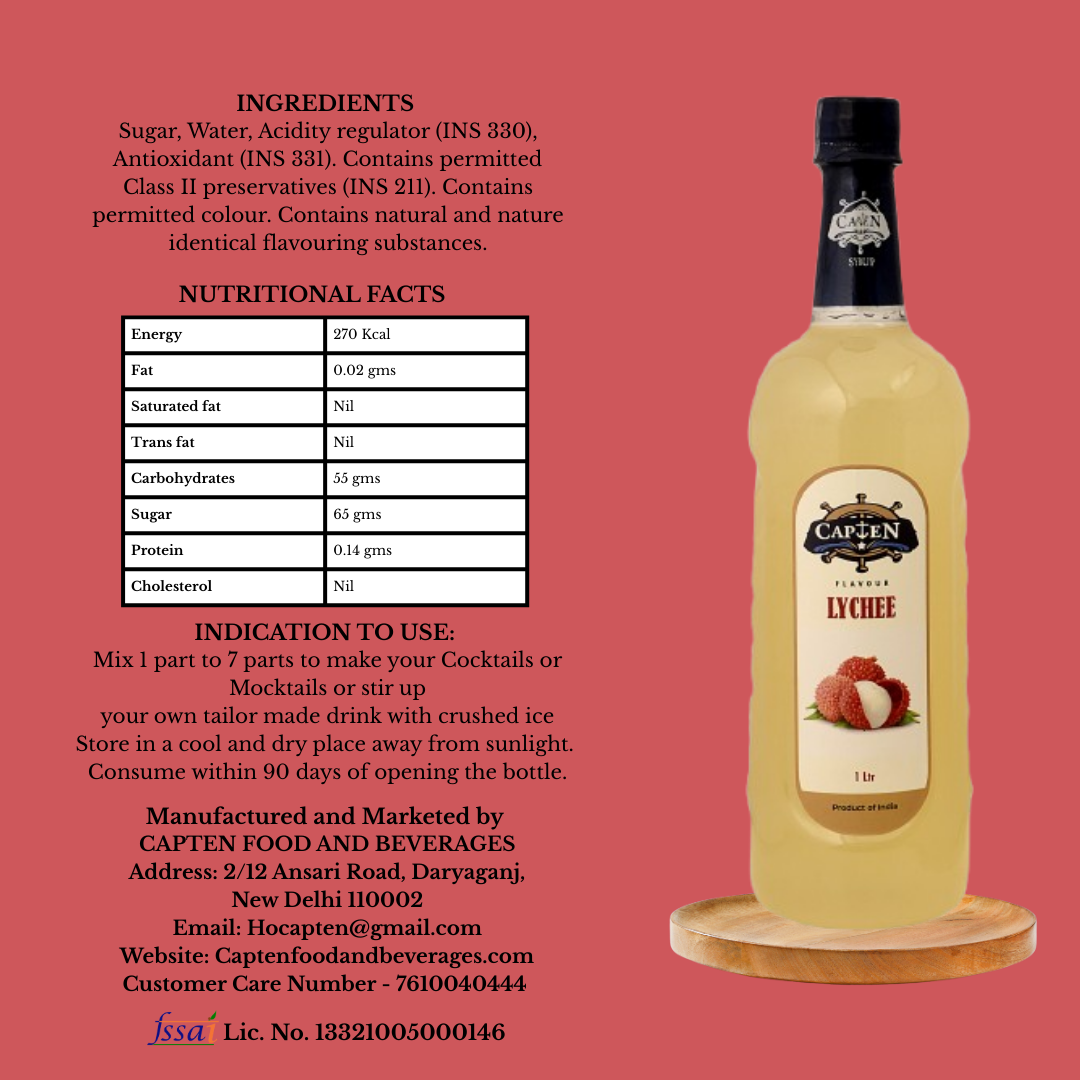 Be the first to review “CAPTEN Lychee Syrup 1L | Rich Lychee Flavor for Mocktails, Cocktails, Lemonades, Iced Teas & More | 35+ Flavours”