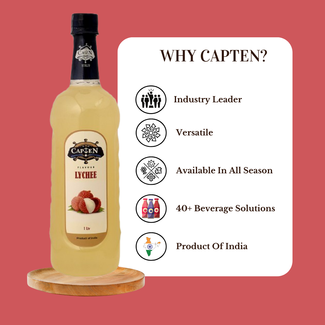 CAPTEN Lychee Syrup 1L | Rich Lychee Flavor for Mocktails, Cocktails, Lemonades, Iced Teas & More | 35+ Flavours