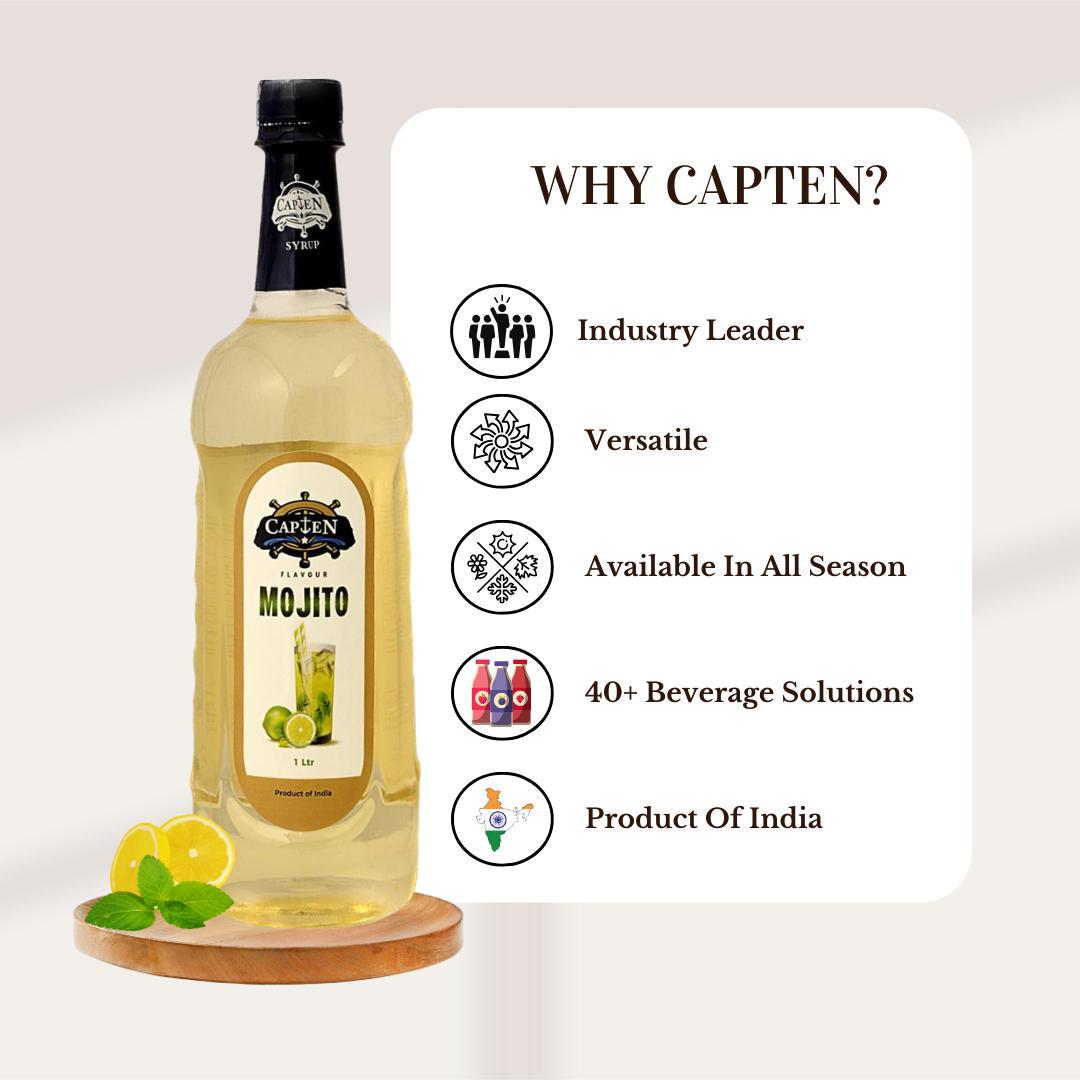 CAPTEN Mojito Syrup 1L | Pure Mint Flavor for Mocktails, Cocktails, Lemonades, Iced Teas & More | 35+ Flavours