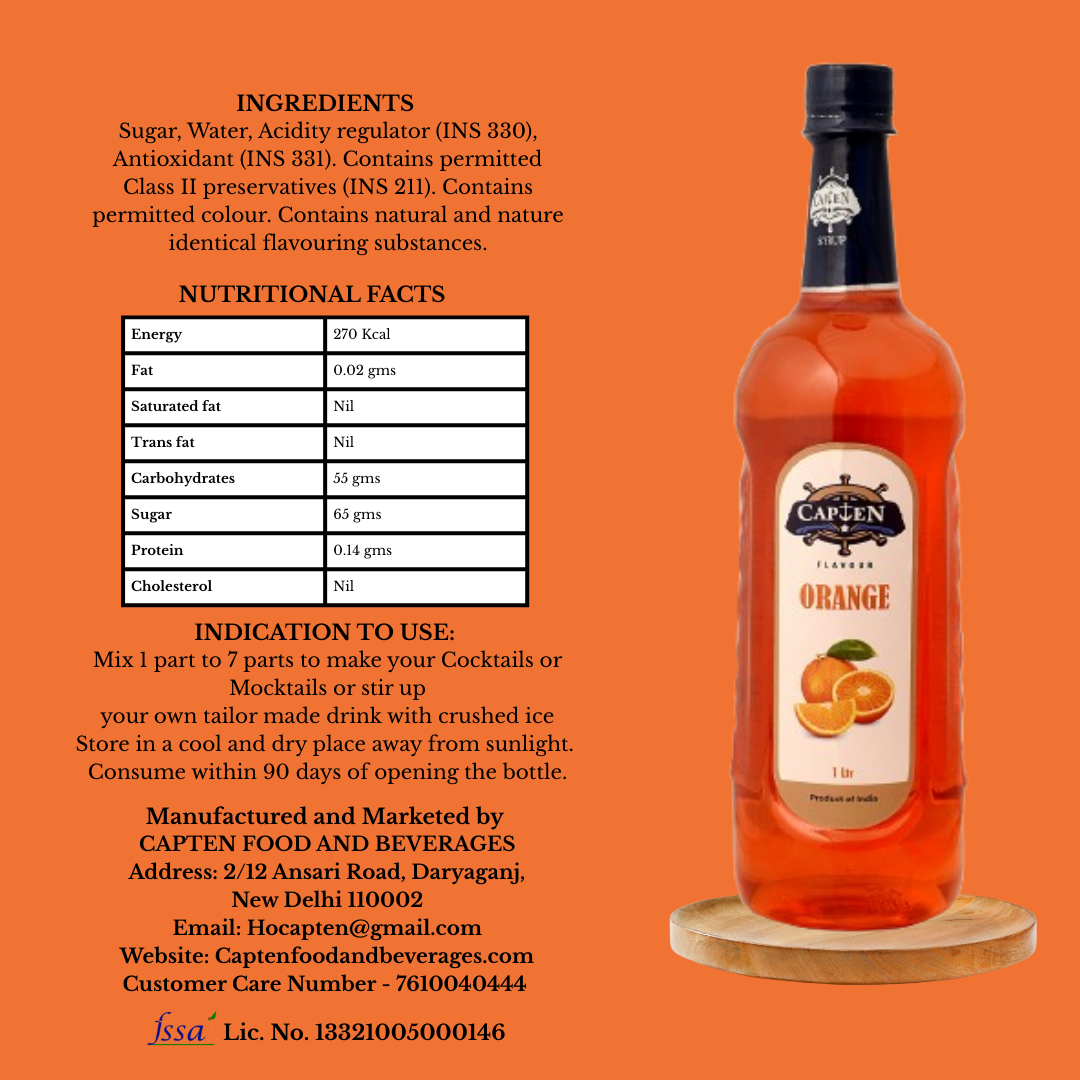 Be the first to review “CAPTEN Orange Syrup, 1L Bottle | Mixer for Fruit Shakes, Falooda, Mocktails, Cocktails, Drinks, Juices, Beverages”