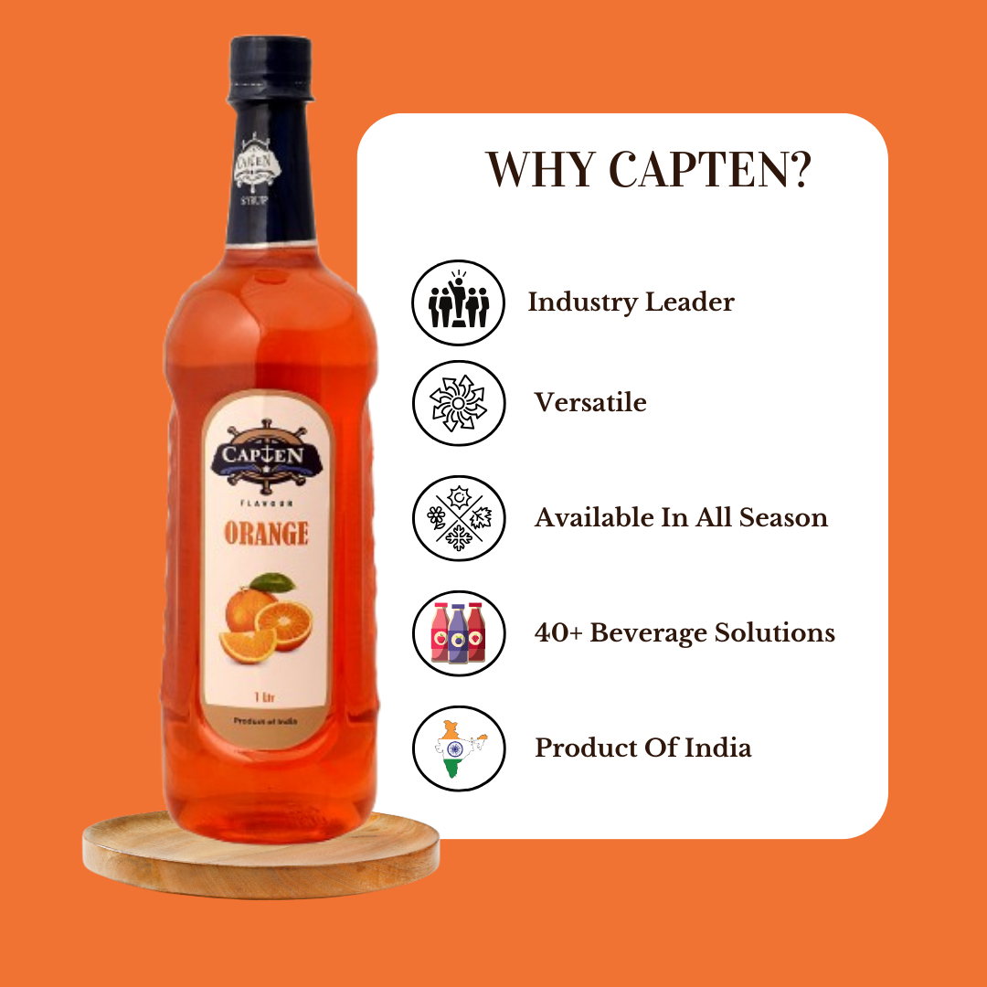 CAPTEN Orange Syrup, 1L Bottle | Mixer for Fruit Shakes, Falooda, Mocktails, Cocktails, Drinks, Juices, Beverages