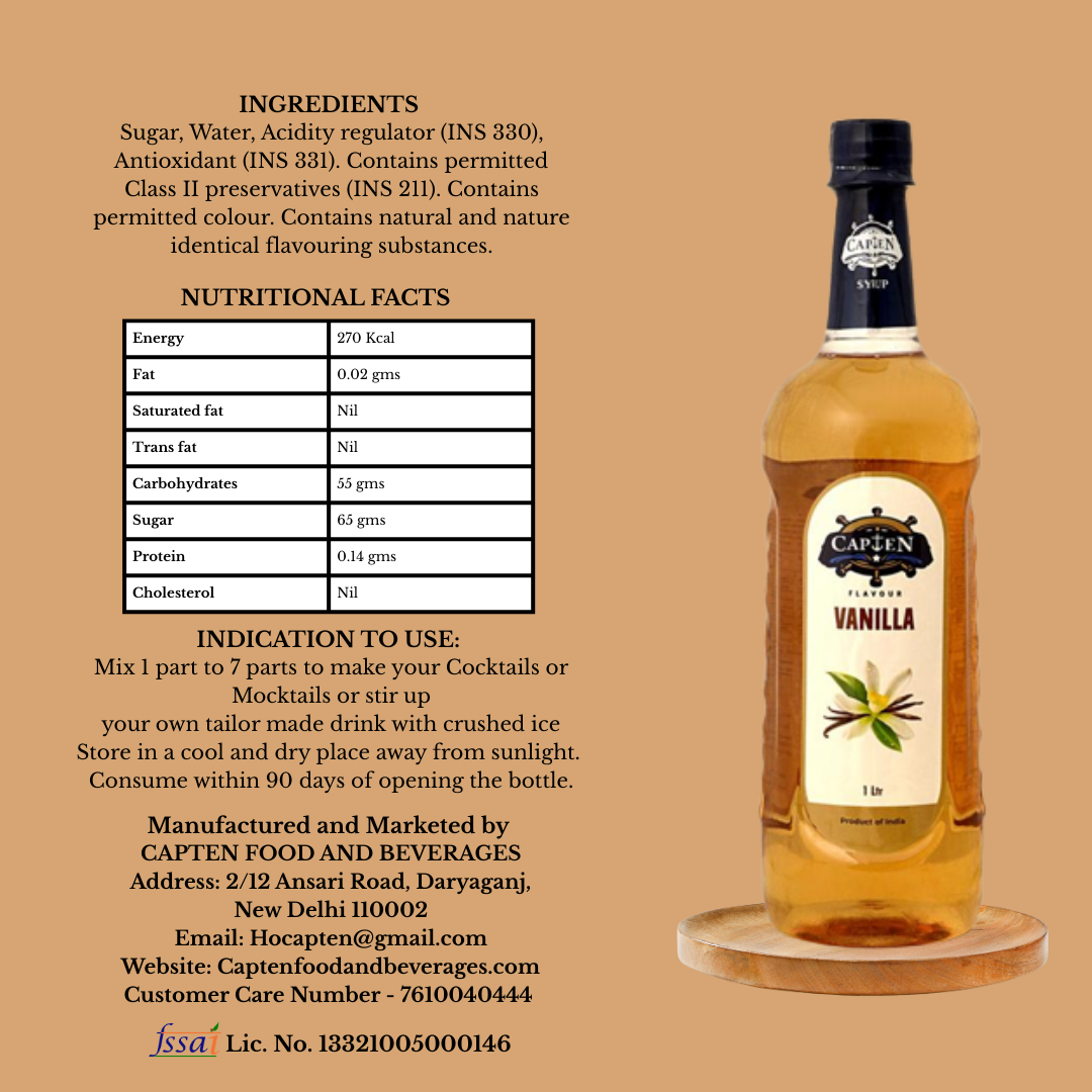 Be the first to review “CAPTEN Vanilla Syrup For Coffee, Milkshake, Frappe, Cold-Coffee, Pancakes, Beverages & More | Concentrated Syrup | Ready To Mix 1L” Cancel reply