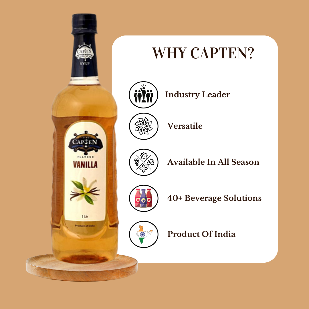 CAPTEN Vanilla Syrup For Coffee, Milkshake, Frappe, Cold-Coffee, Pancakes, Beverages & More | Concentrated Syrup | Ready To Mix 1L
